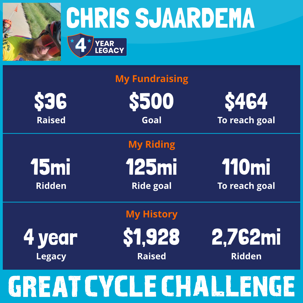 I am riding 125 mi to fight kids' cancer and save little lives. Please sponsor me to support my challenge!