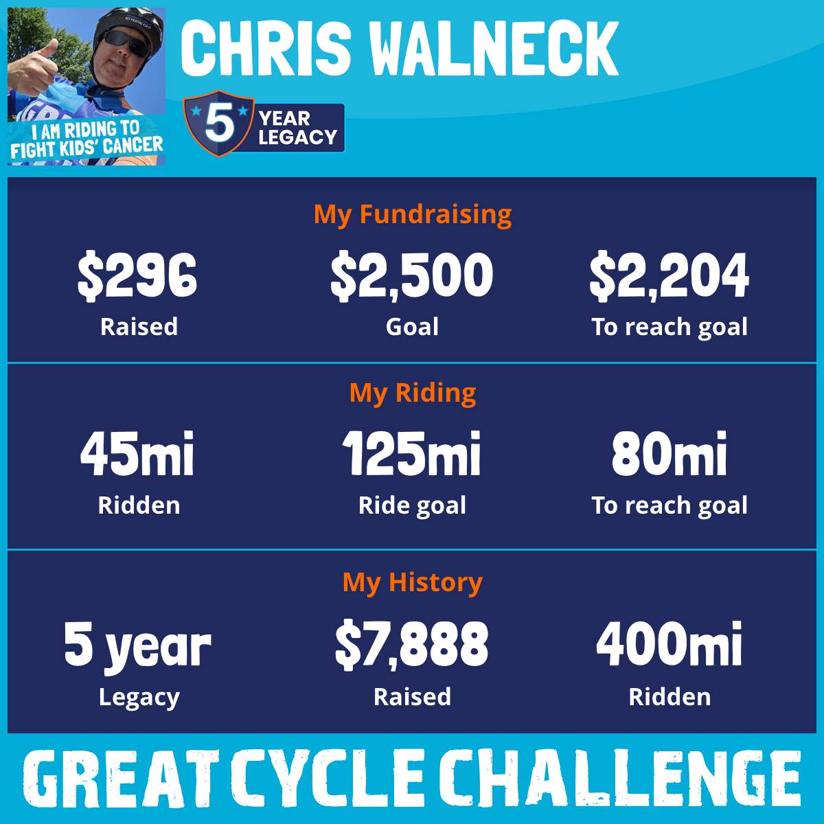 I just hit $5,000 to fight kids' cancer! Thank you so much for your support.