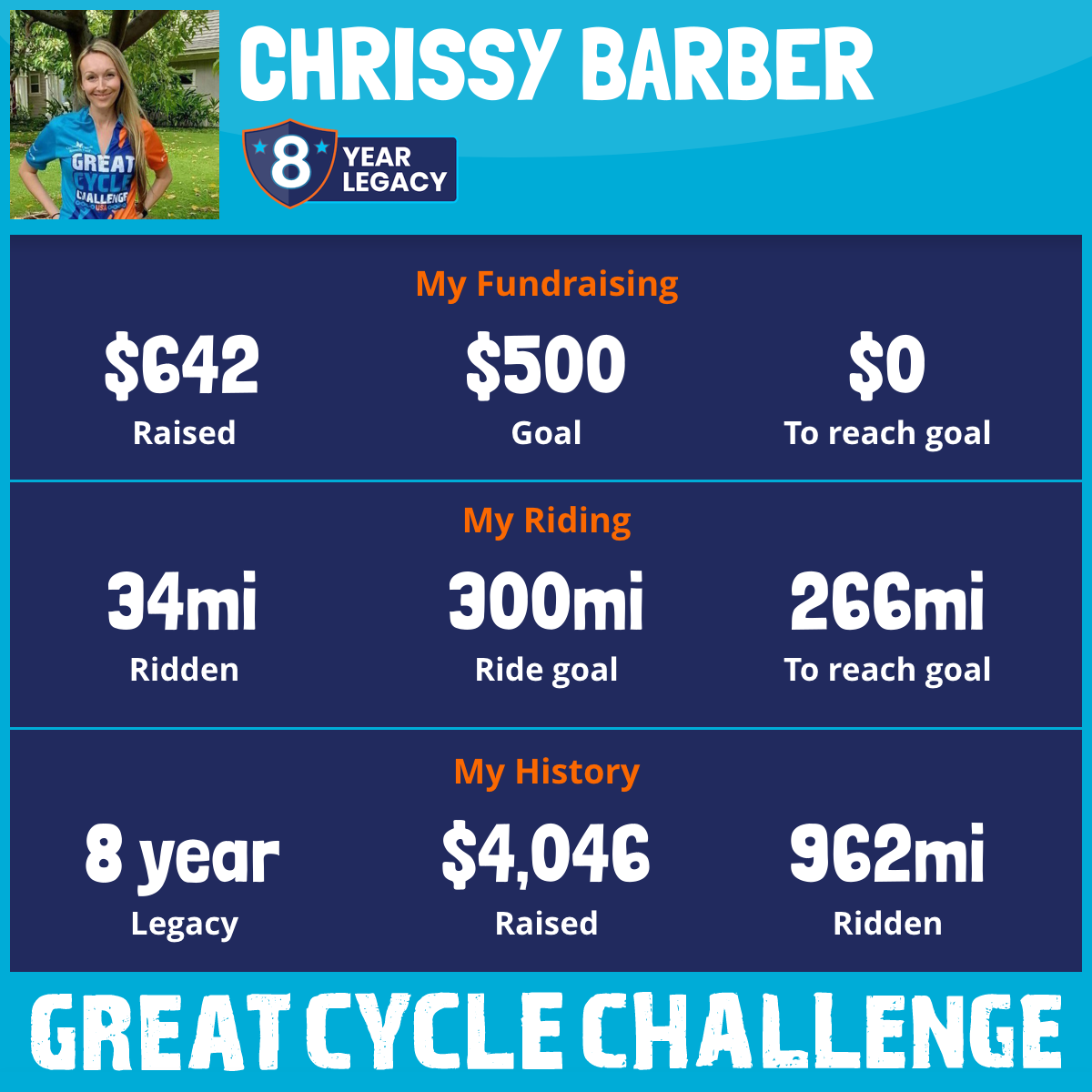 250 mi Ridden$322 Raised2023