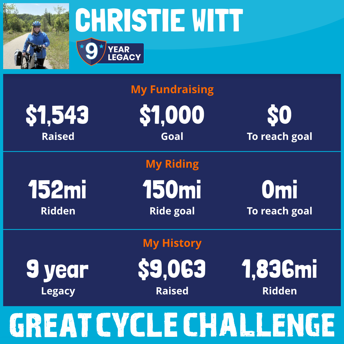 We have all been affected by cancer in some way. My family, friends, colleagues, students, neighbors...everyone. It's most upsetting when the patient is a child. Although no one deserves to have cancer, a child deserves it the least. During each ride in June, I will pray for those children who are battling cancer, for those who have won the fight, and for those who have become angels. I believe that one day there will be a cure.