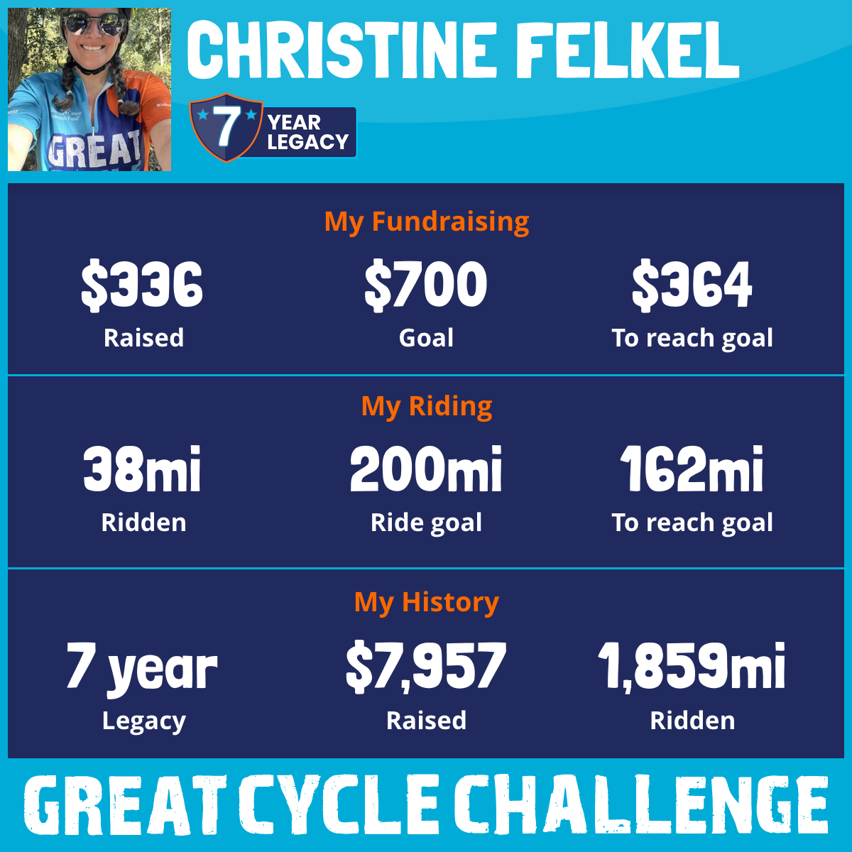 250 mi Ridden$1,360 Raised2023