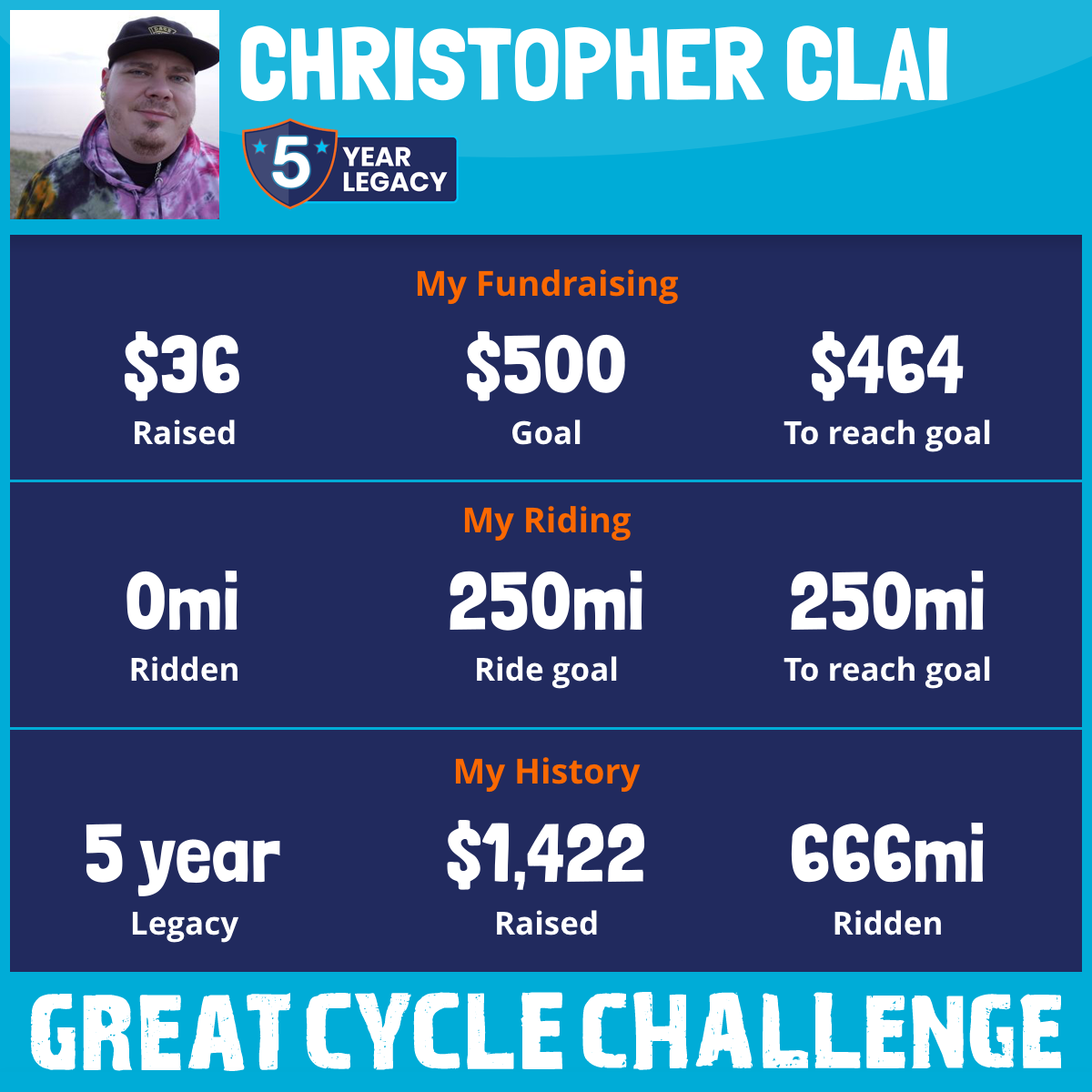 This September, I am participating in the Great Cycle Challenge to fight kids' cancer! Having multiple family members and close friends get diagnosed or pass away from Cancer makes me want to push toward finding a cure, for all forms of cancer.