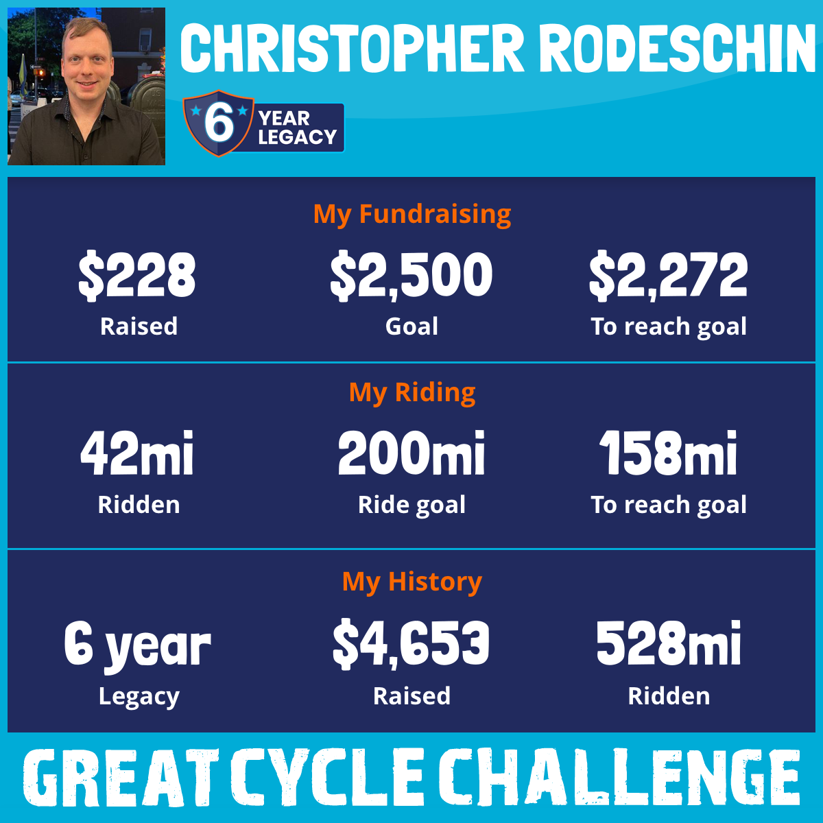 I am riding 200 mi to fight kids' cancer and save little lives. Please sponsor me to support my challenge!