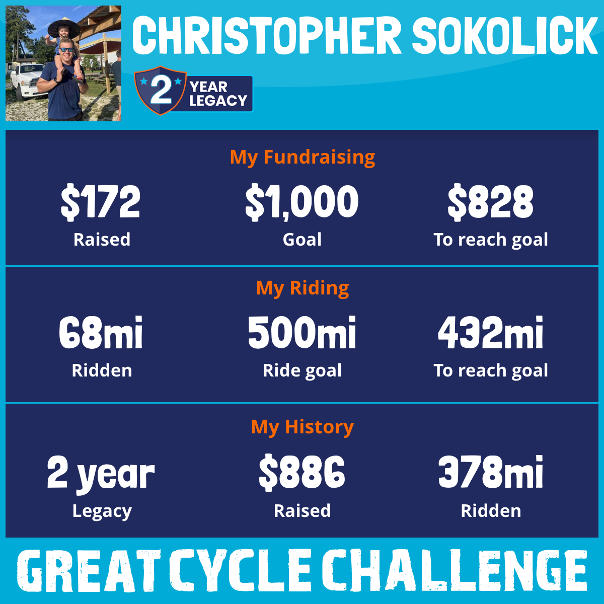 I am riding 500 mi in memory of my loved one, Loretta Zackowski. Please sponsor me and support my challenge to fight kids' cancer and save little lives.