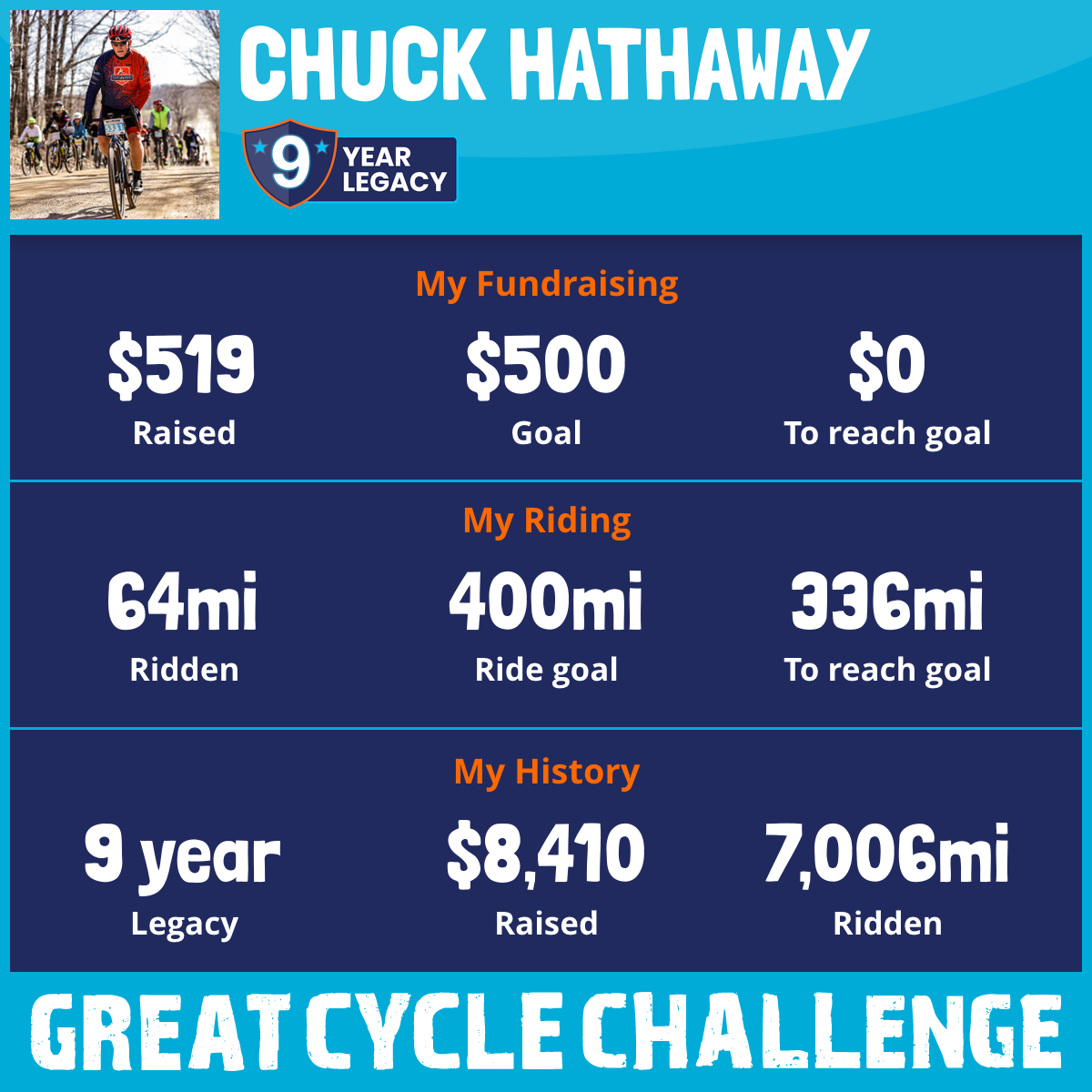 1,070 mi Ridden$402 Raised2018
