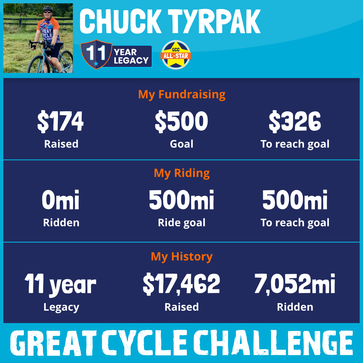 This September, I am taking part in the Great Cycle Challenge to fight kids' cancer! This will be my 11th year, and I plan on reaching over 500 miles by the end of the month for this very worthy cause.