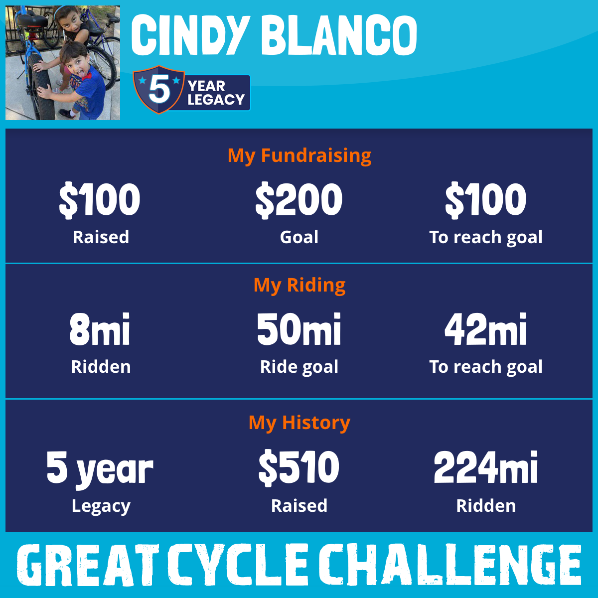 I am riding 50 mi to fight kids' cancer and save little lives. Please sponsor me to support my challenge!