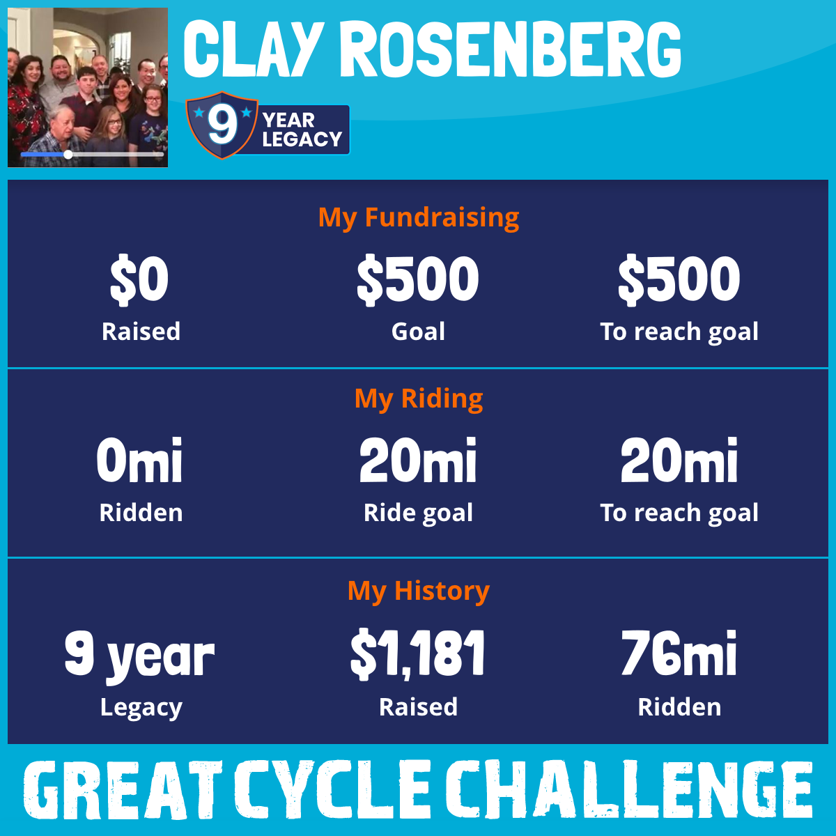 I am riding 20 mi for MIchael Rosenberg. Please sponsor me and support my challenge to fight kids' cancer and save little lives.
