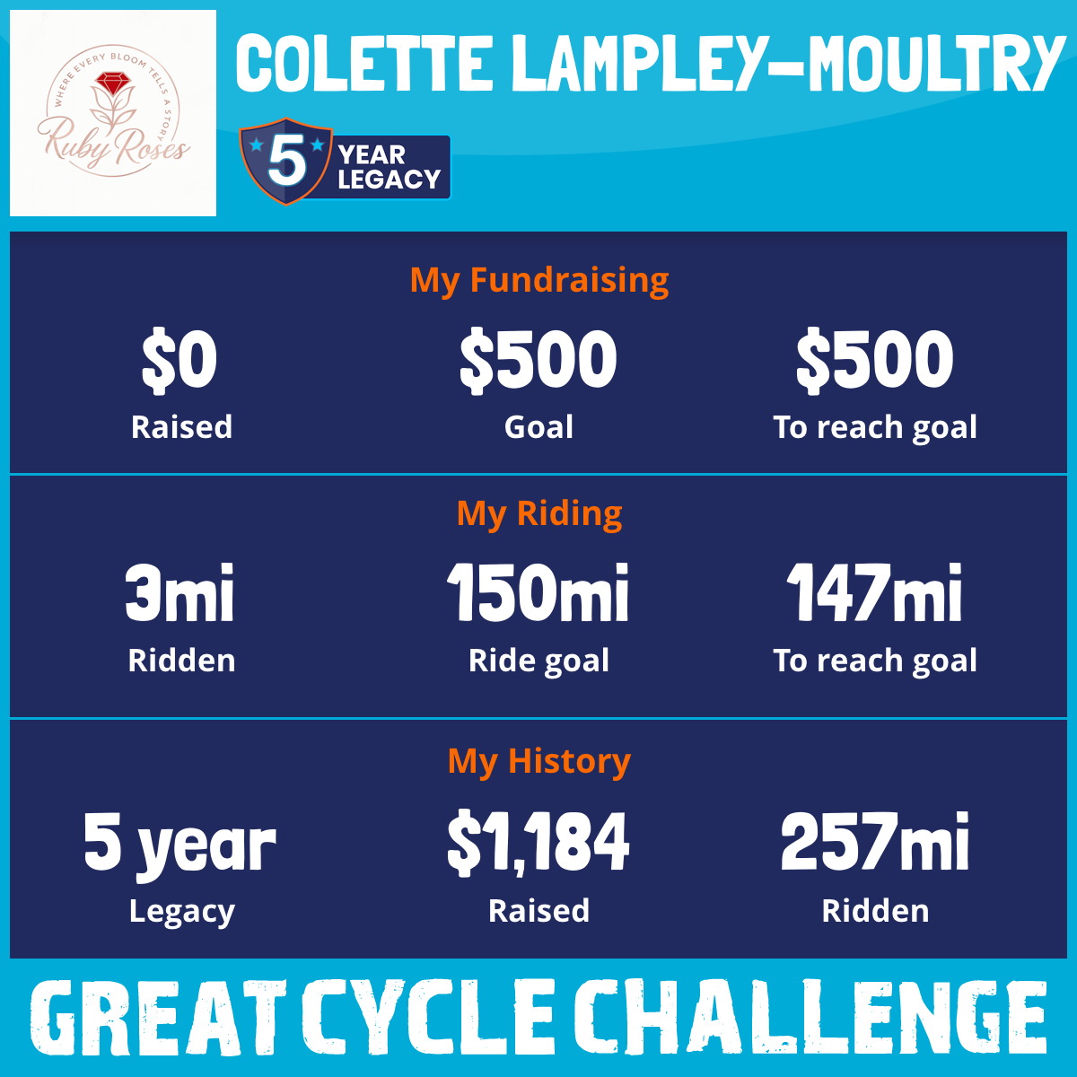 150 mi Ridden$505 Raised2020