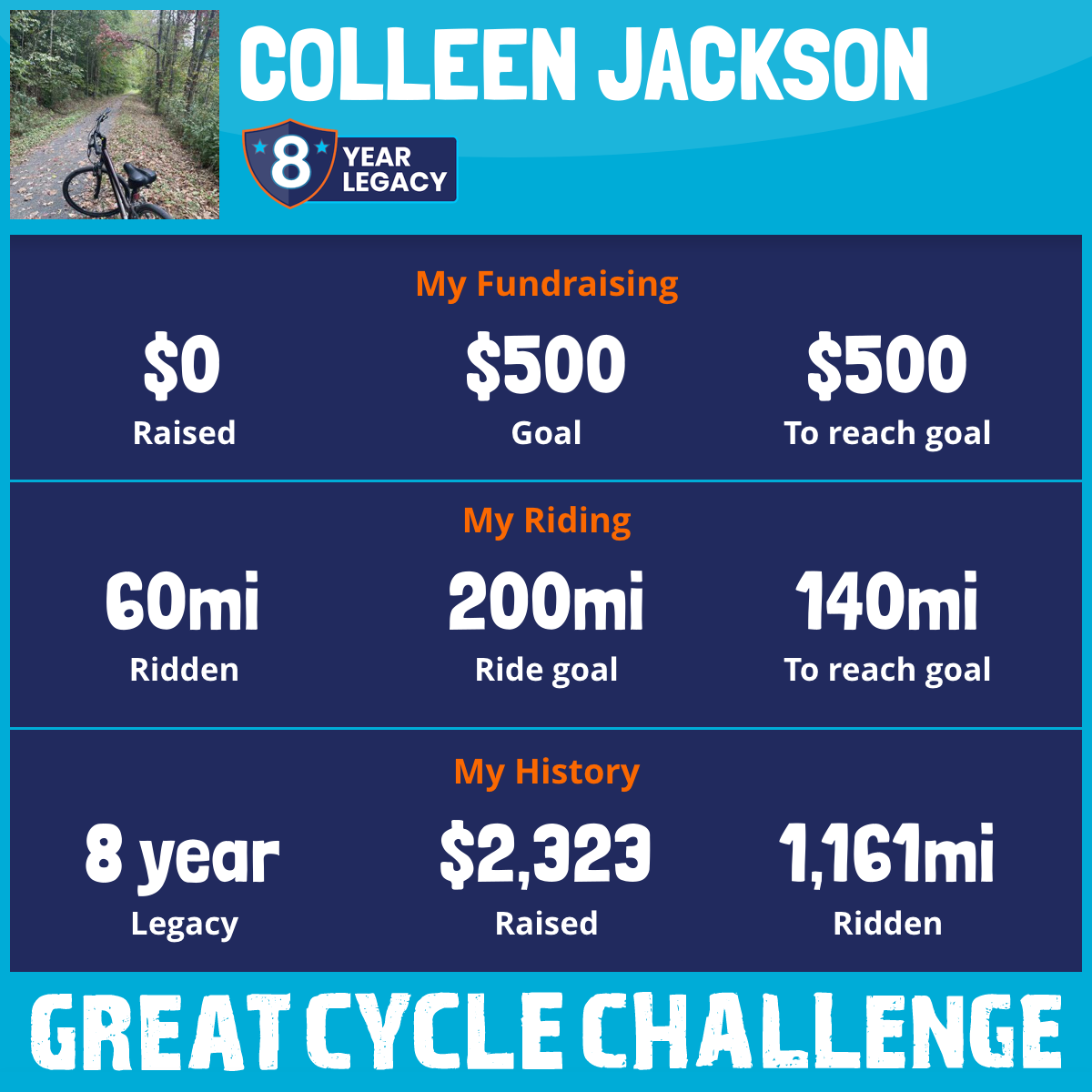 I didn't realize until I got my package that this is my 5th year! I have increased both my fundraising goal and my ride goal this year! I know that I can ride the 250 miles, but will YOU support my effort to raise $500?????