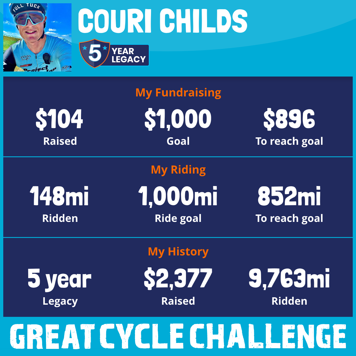 3,670 mi Ridden$600 Raised2023