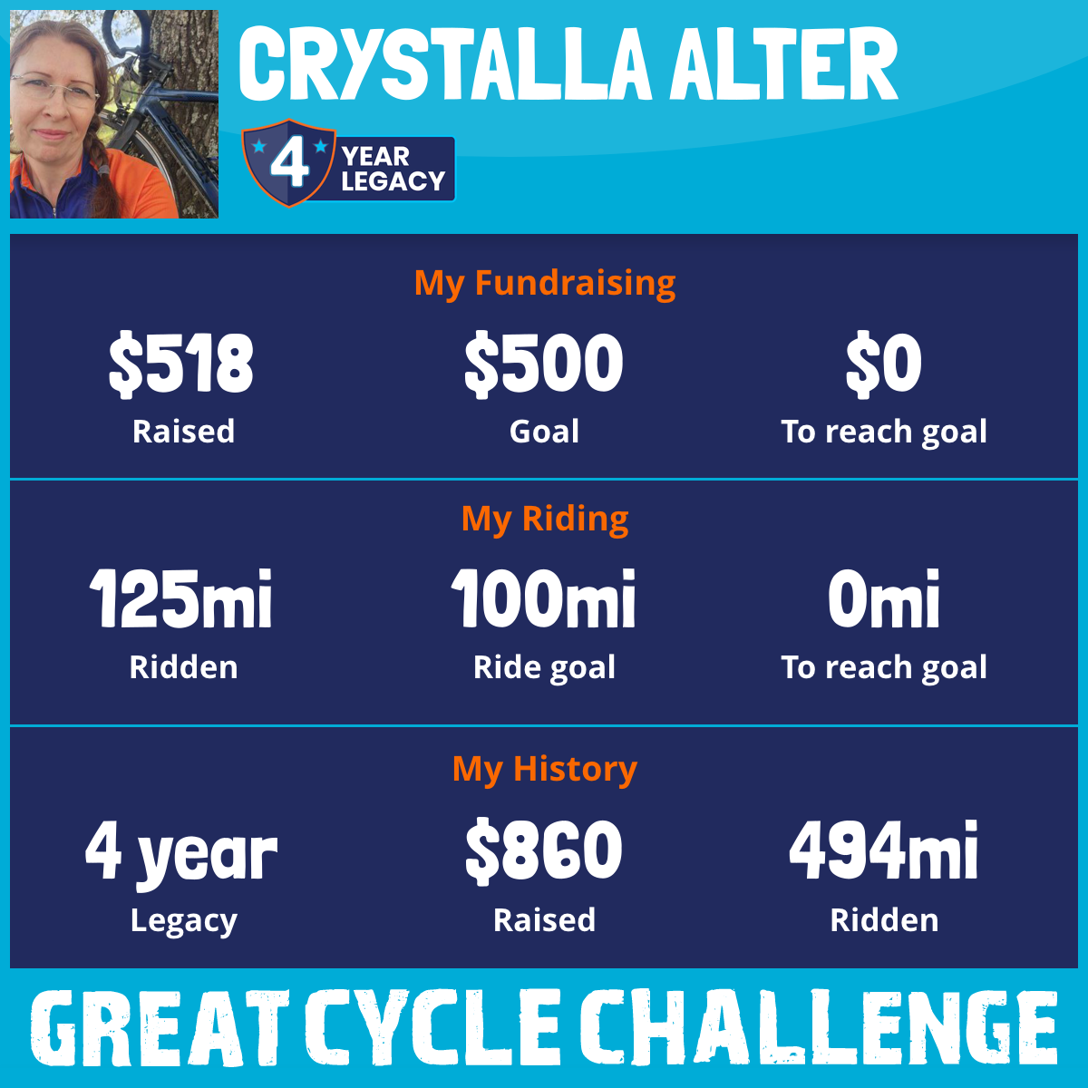 I am riding 100 mi to fight kids' cancer and save little lives. Please sponsor me to support my challenge!