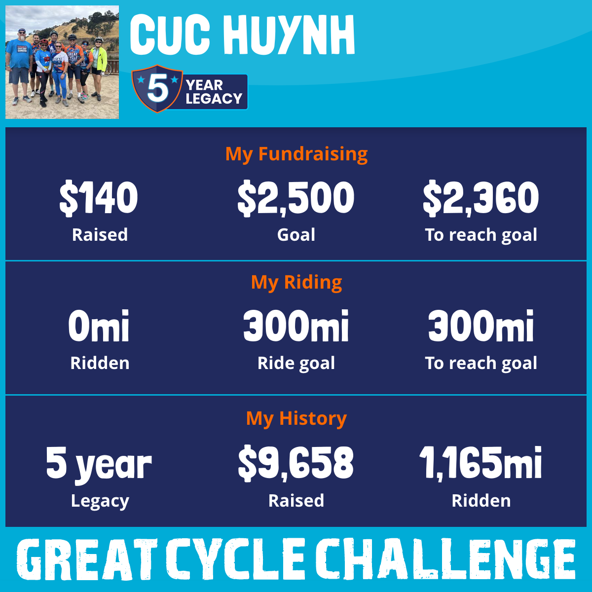 300 mi Ridden$3,792 Raised2023