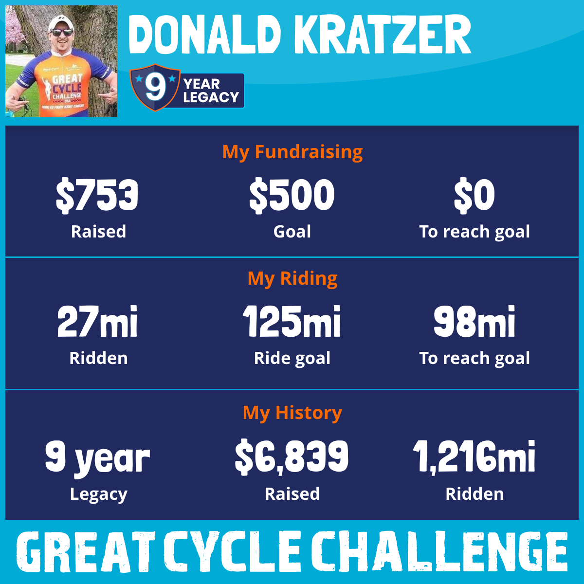 I am riding 125 mi to fight kids' cancer and save little lives. Please sponsor me to support my challenge!
