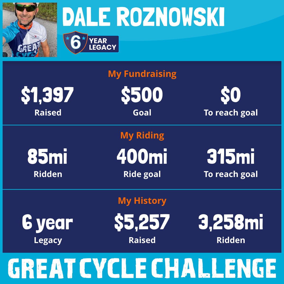 Kids deserve classrooms, not chemo. I’m riding the Great Cycle Challenge to help change that—your donation (big or small) powers research and hope.