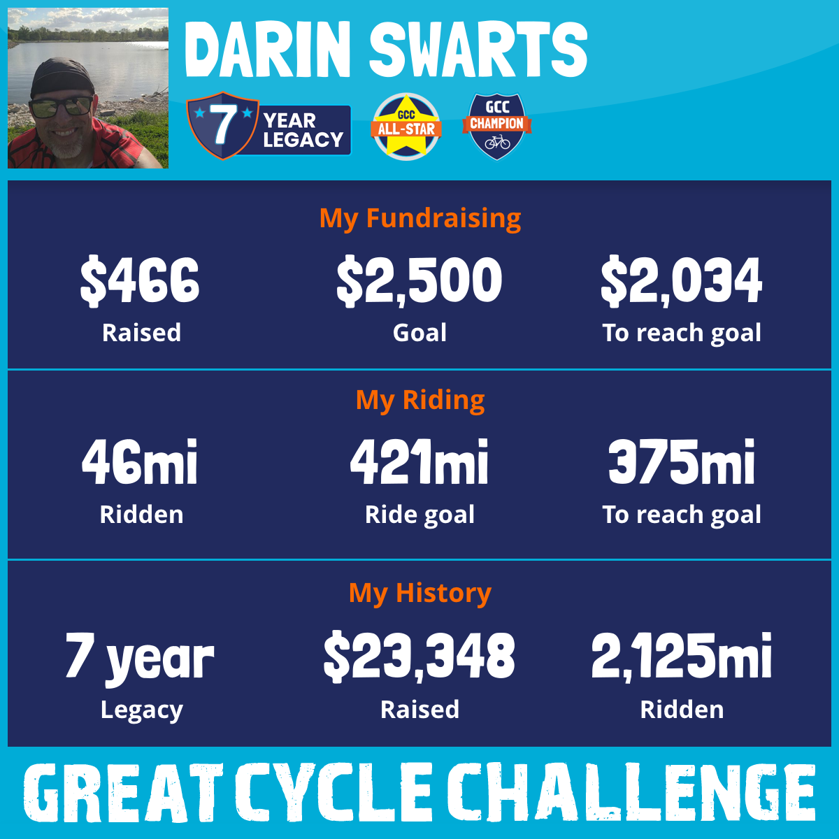 421 mi Ridden$6,121 Raised2025