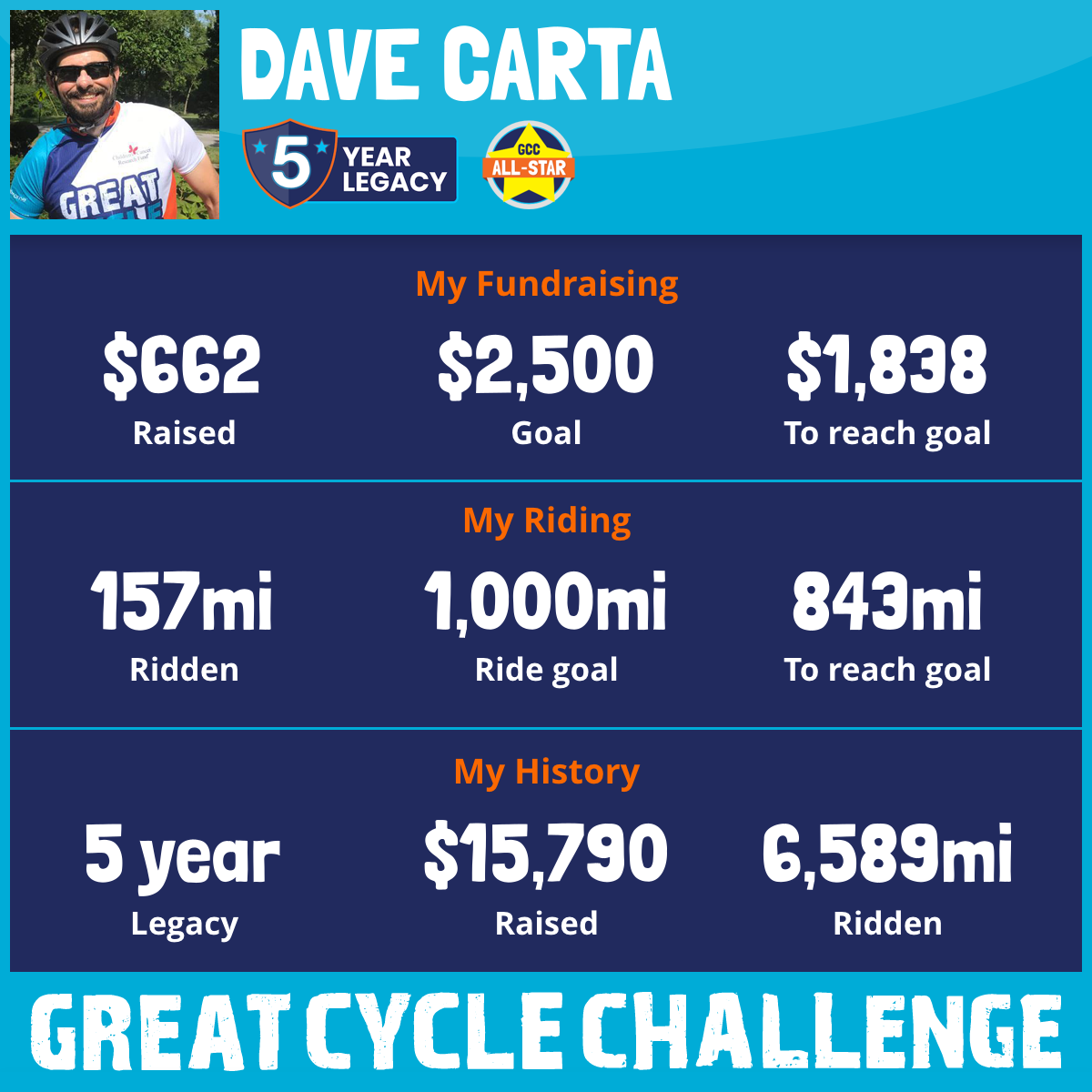 1,051 mi Ridden$3,067 Raised2021