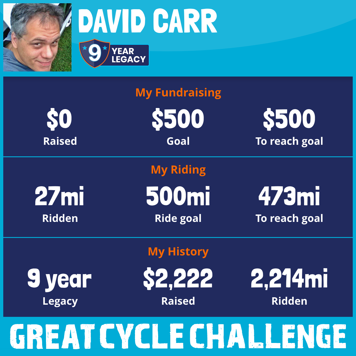 I am riding 500 mi in memory of Billy Carr. Please sponsor me and support my challenge to fight kids' cancer and save little lives.