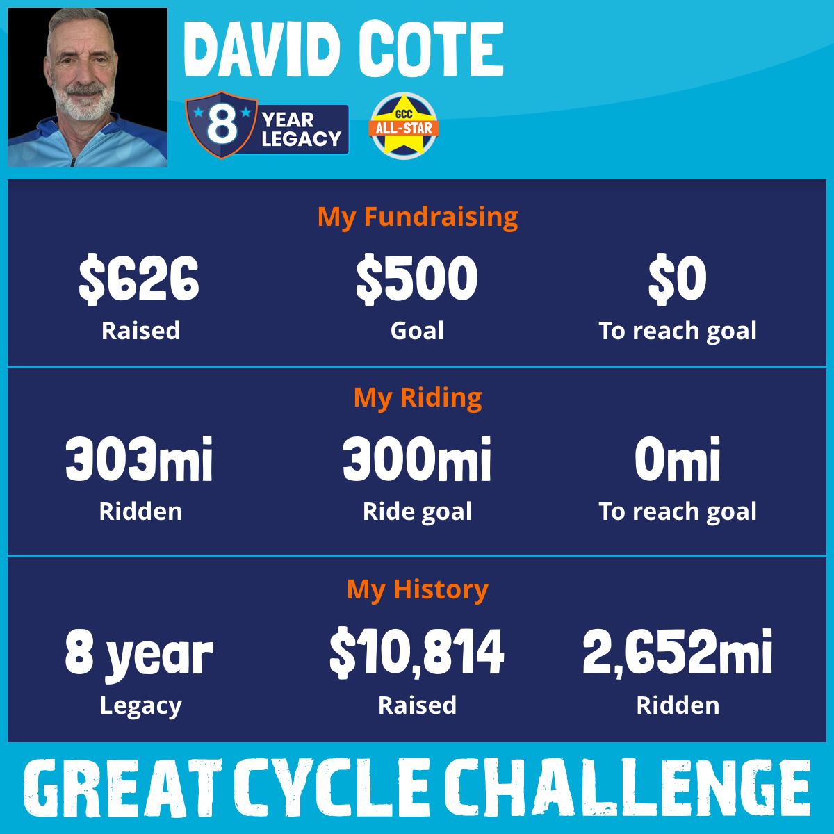 Riding in memory of my friends Gary and Jane who passed away from cancer and for all the kids fighting this disease.