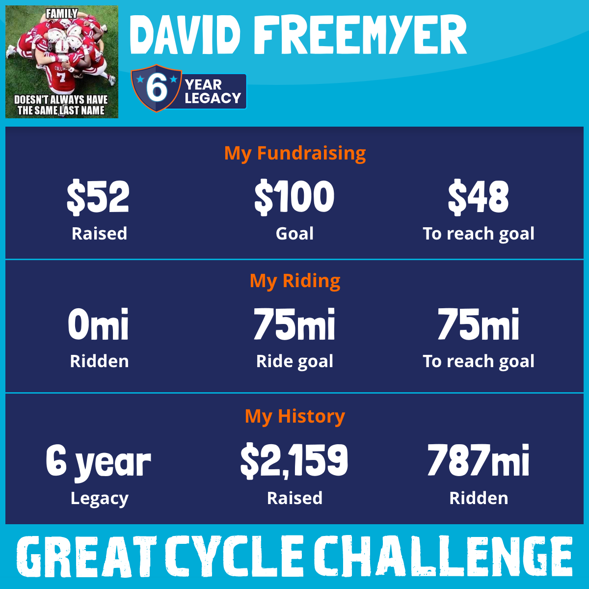 I am riding 75 mi for Kraus, Budt, Holdegraver, P_Clark, and many more.. Please sponsor me and support my challenge to fight kids' cancer and save little lives.