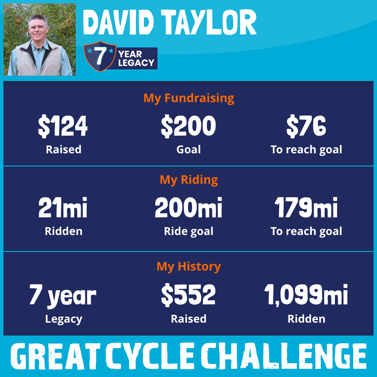 I am riding 200 mi in memory of Hannah Taylor. Please sponsor me and support my challenge to fight kids' cancer and save little lives.