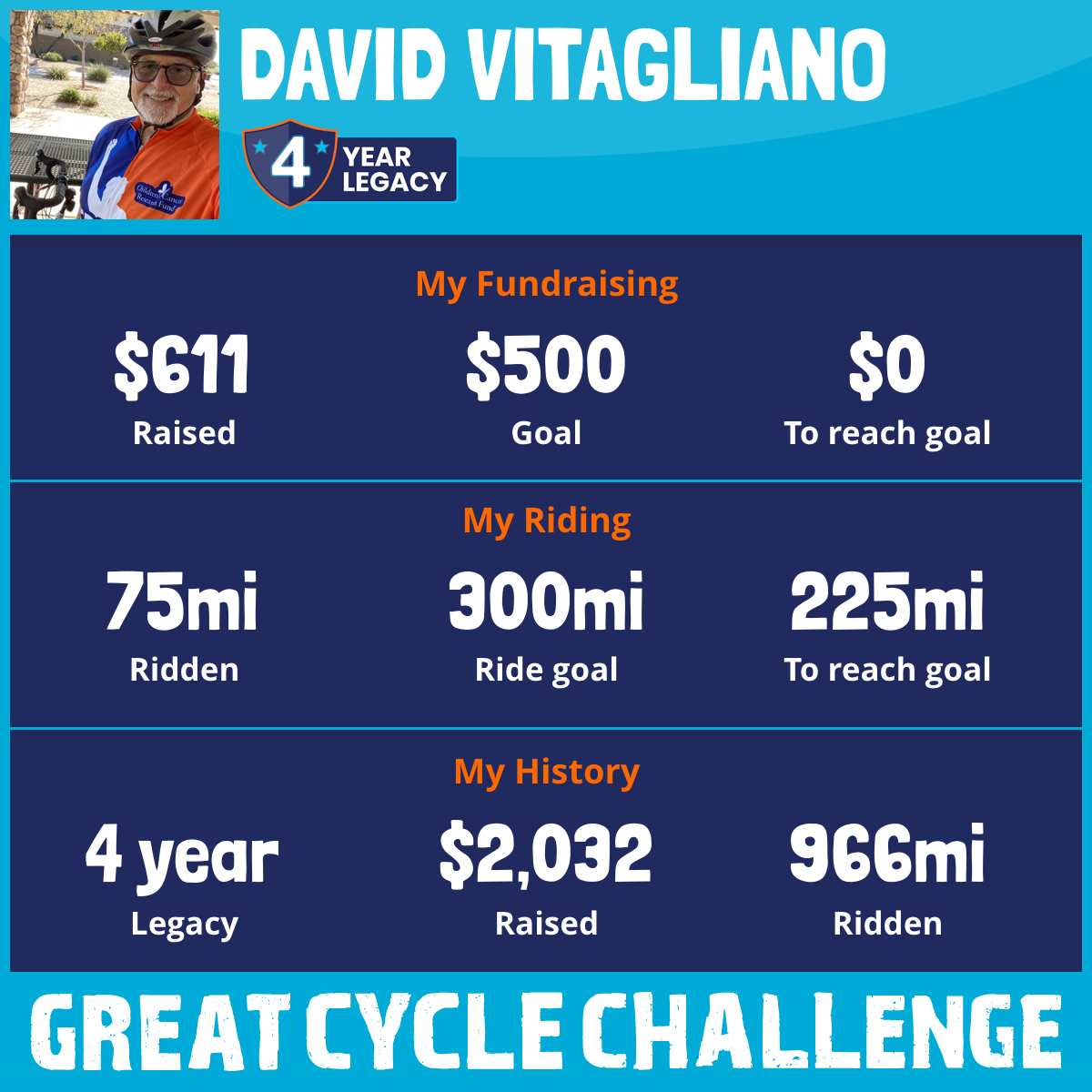I am riding 300 mi in support of those who are suffering. Please sponsor me and support my challenge to fight kids' cancer and save little lives.