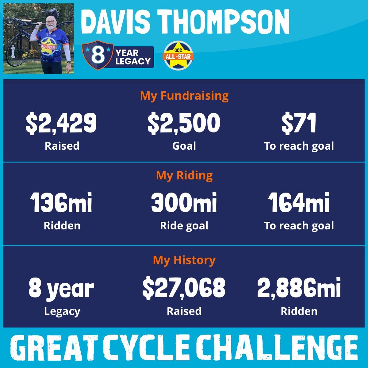 366 mi Ridden$4,779 Raised2023