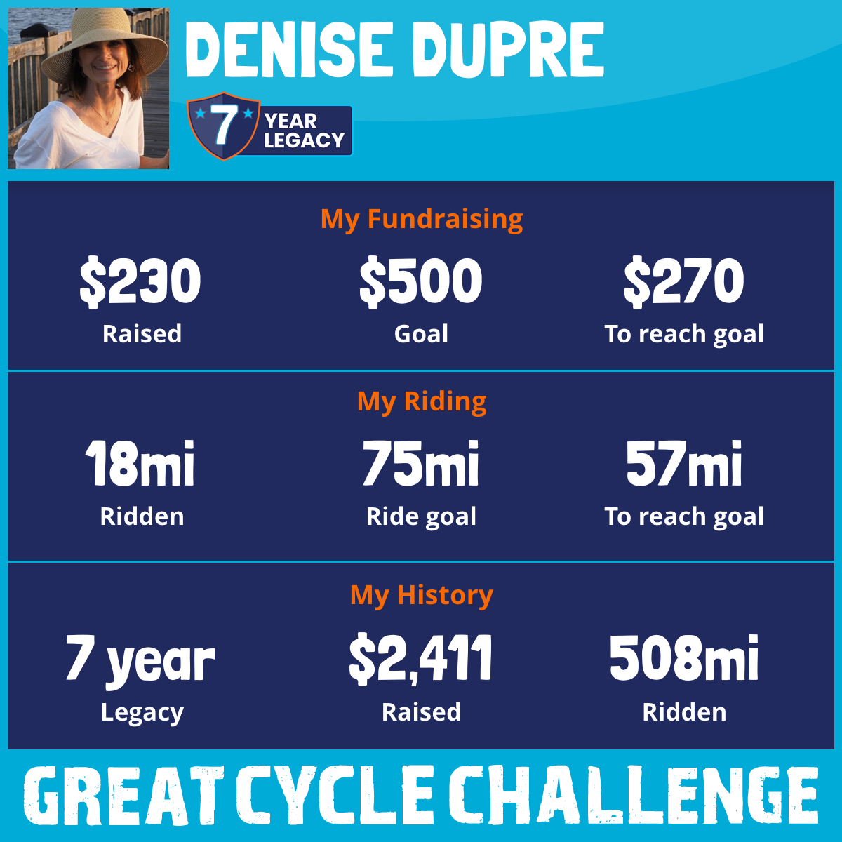 I'm riding again! This is my 7th year taking part in the Great Cycle Challenge to fight kids' cancer!