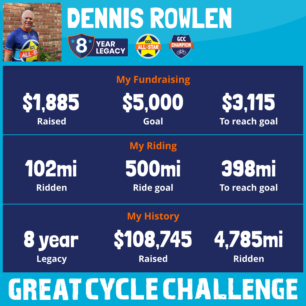 604 mi Ridden$19,203 Raised2024