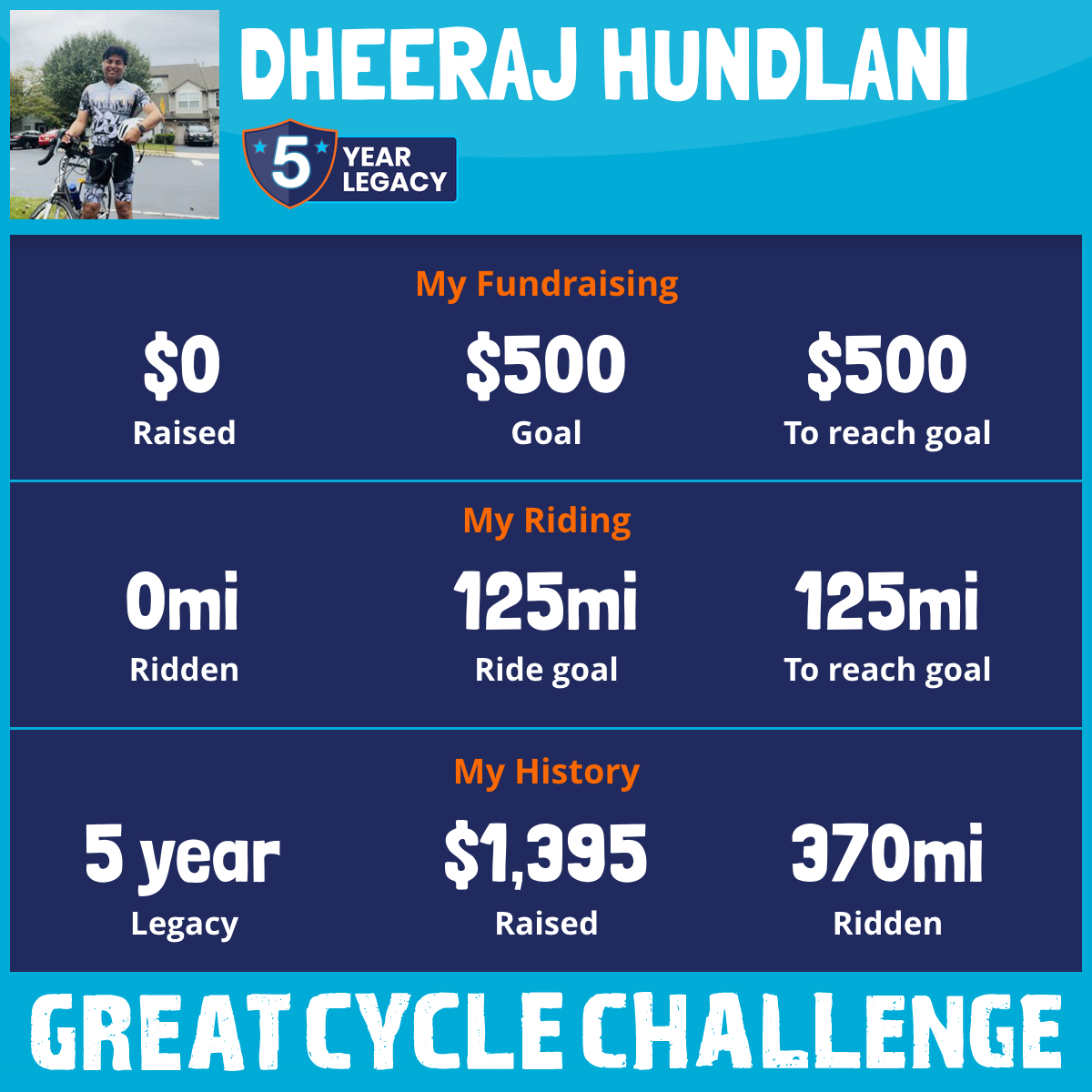 151 mi Ridden$1,278 Raised2023