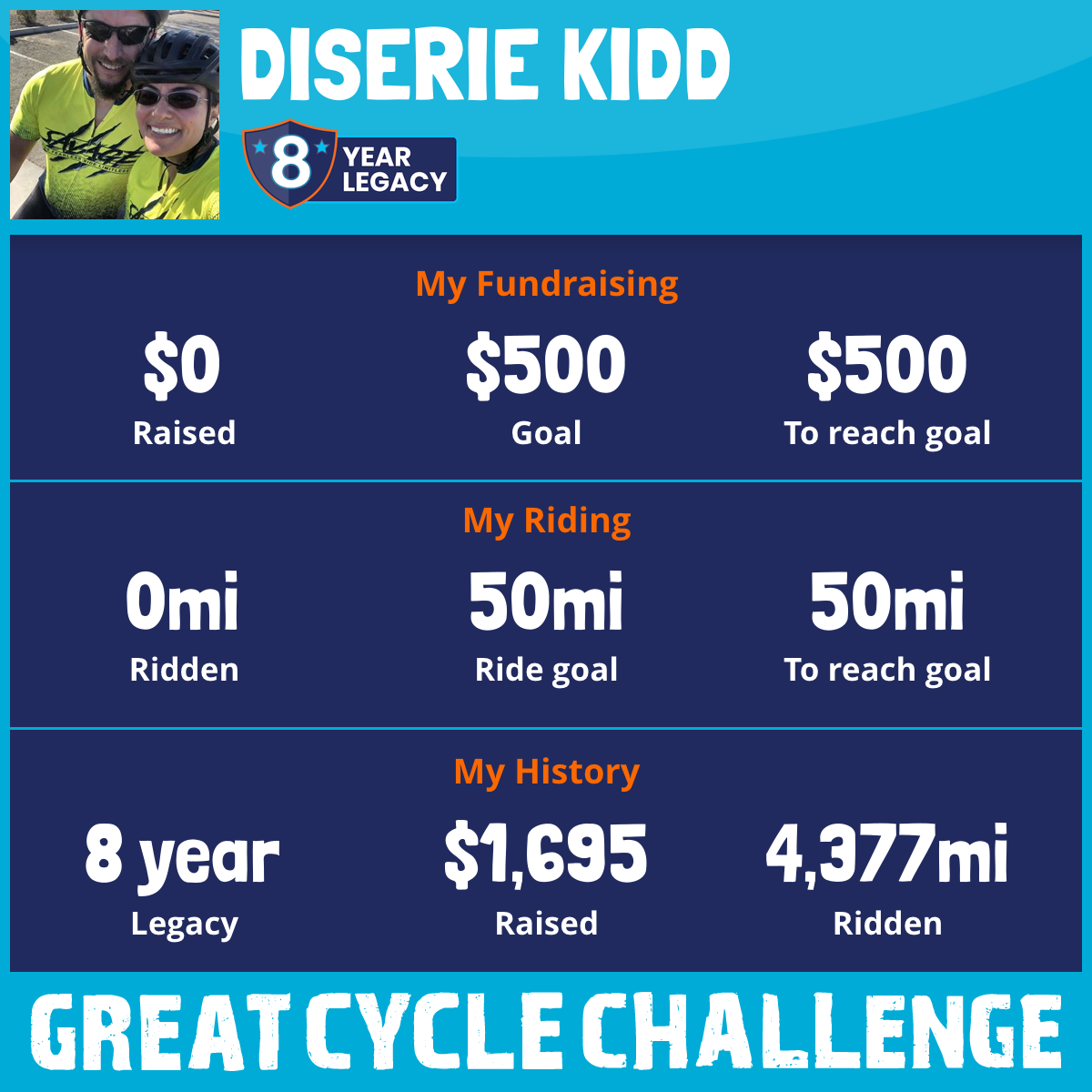 1,096 mi Ridden$350 Raised2020