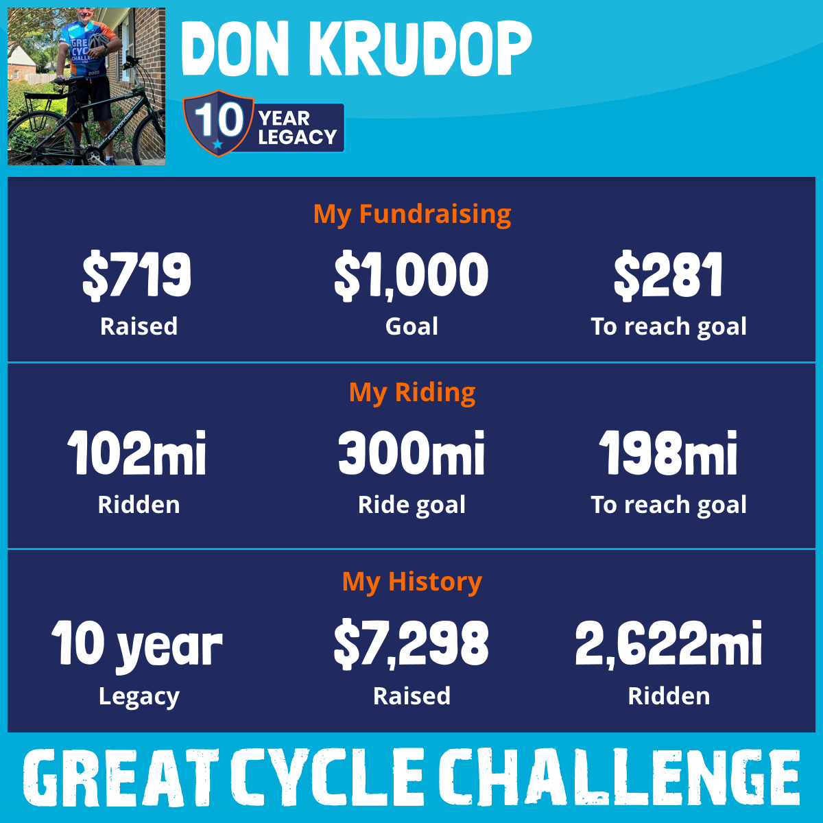 From September 1-30, I am riding in the Great Cycle Challenge to fight kids' cancer! 2024 marks my 9th year of riding in GCC.