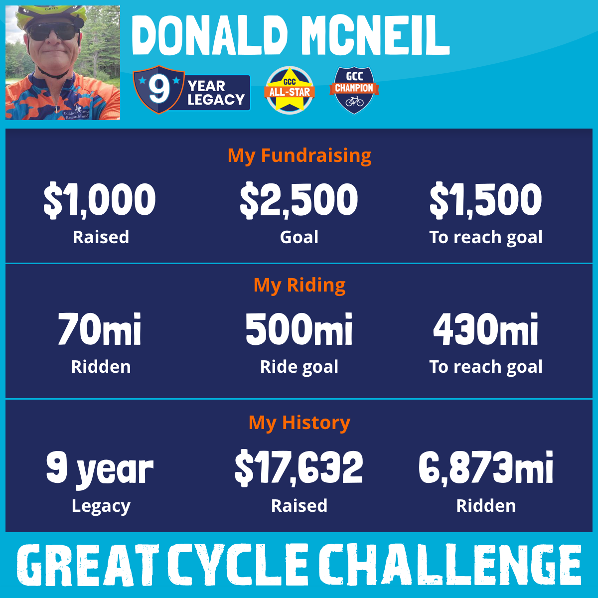 1,184 mi Ridden$2,751 Raised2017