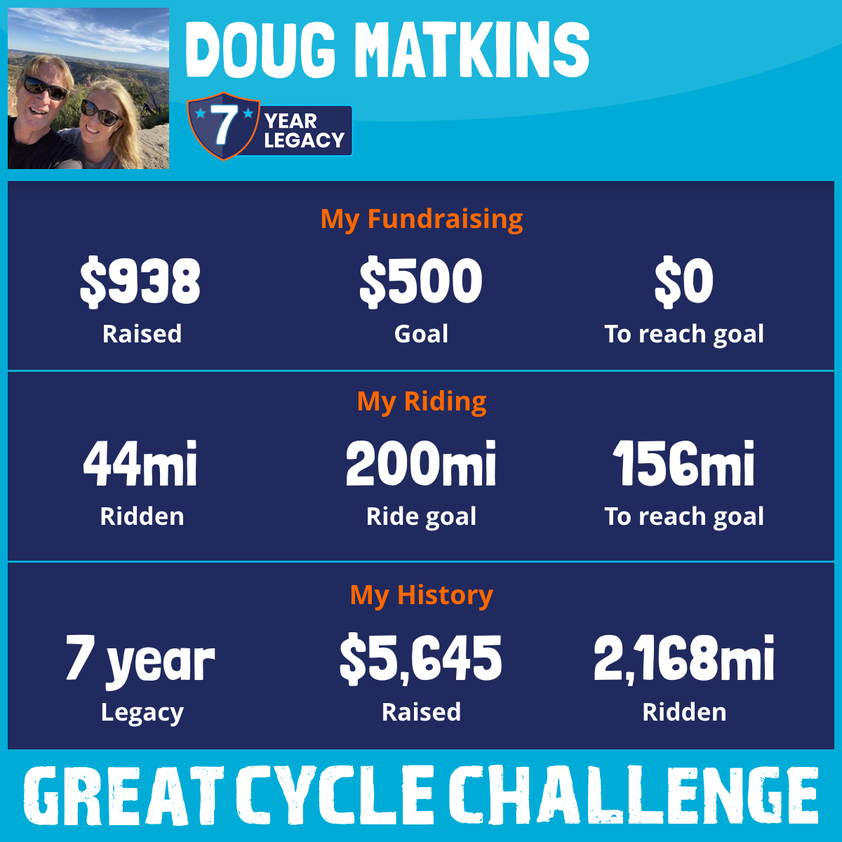 For the 6th consecutive year, I am taking part in the Great Cycle Challenge to fight kids' cancer.