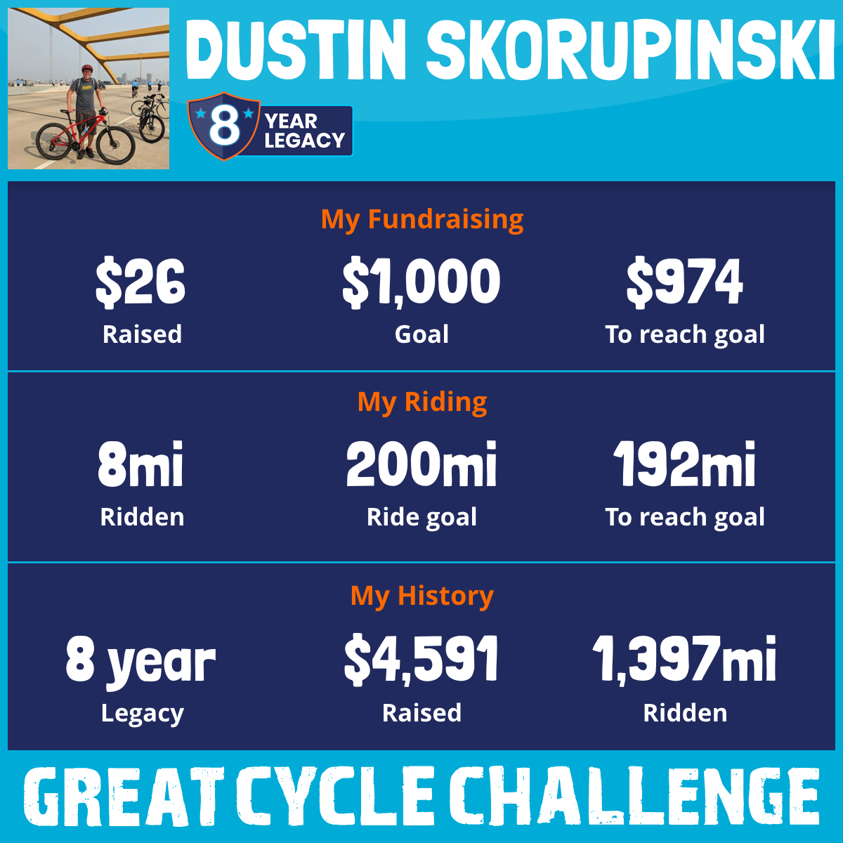 I am riding 200 mi in memory of Ron and Judy. Please sponsor me and support my challenge to fight kids' cancer and save little lives.