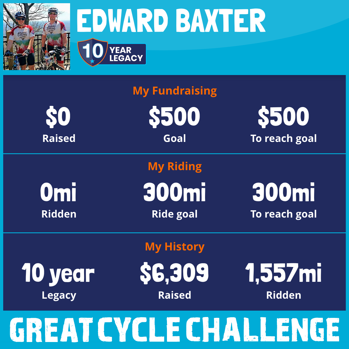 300 mi Ridden$1,004 Raised2018