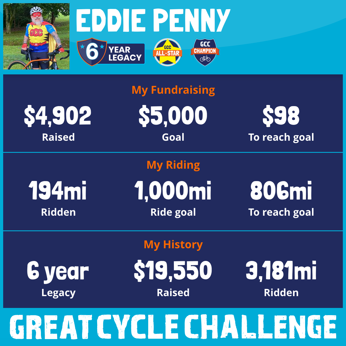 I am riding 1,000 mi to fight kids' cancer and save little lives. Please sponsor me to support my challenge!