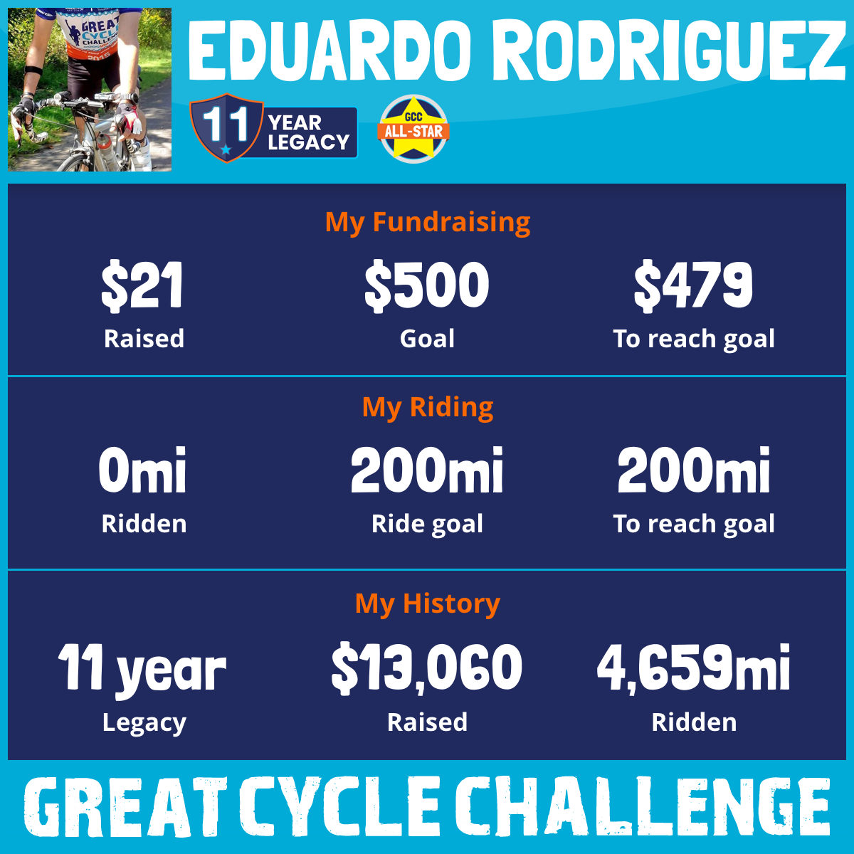 This year I am back on my bike and trying to ride as much as i can. The reason I take the challenge is because more American children lose their lives to cancer than any other disease - 38 kids die every week, I will set my miles goal to 250, but i will keep increasing if i can ride more and more.