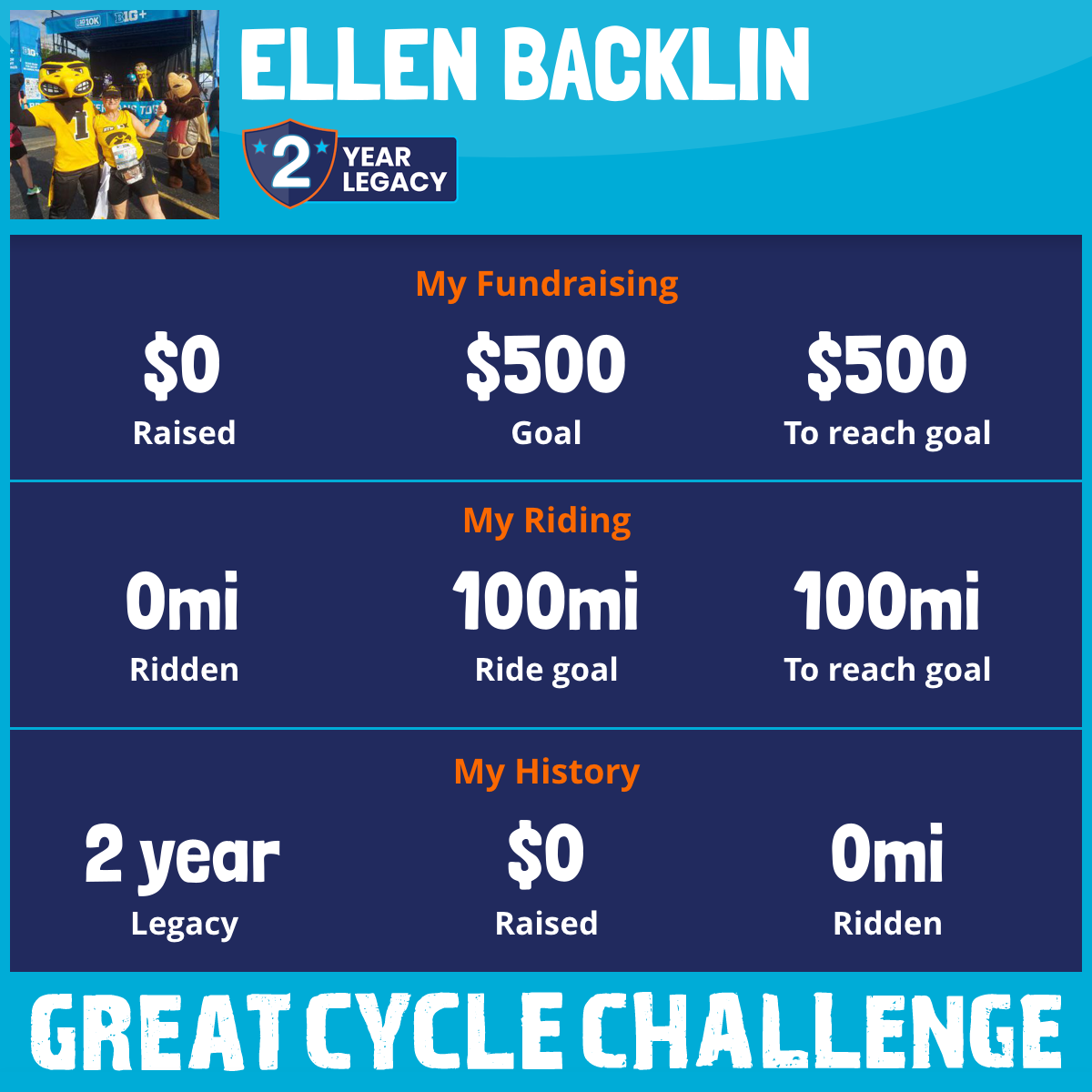I am riding 100 mi for Prudence Backlin. Please sponsor me and support my challenge to fight kids' cancer and save little lives.