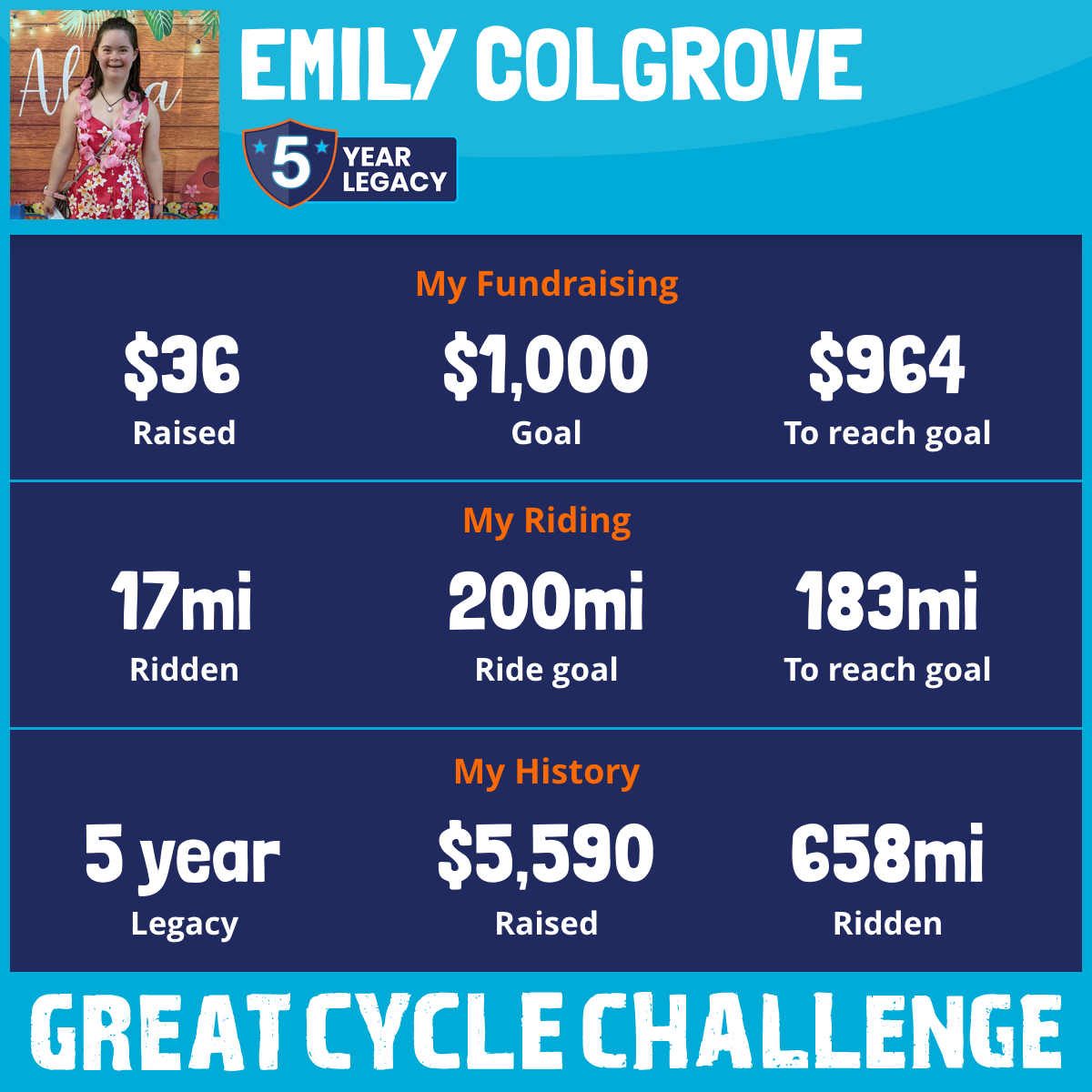 I am riding 200 mi to fight kids' cancer and save little lives. Please sponsor me to support my challenge!