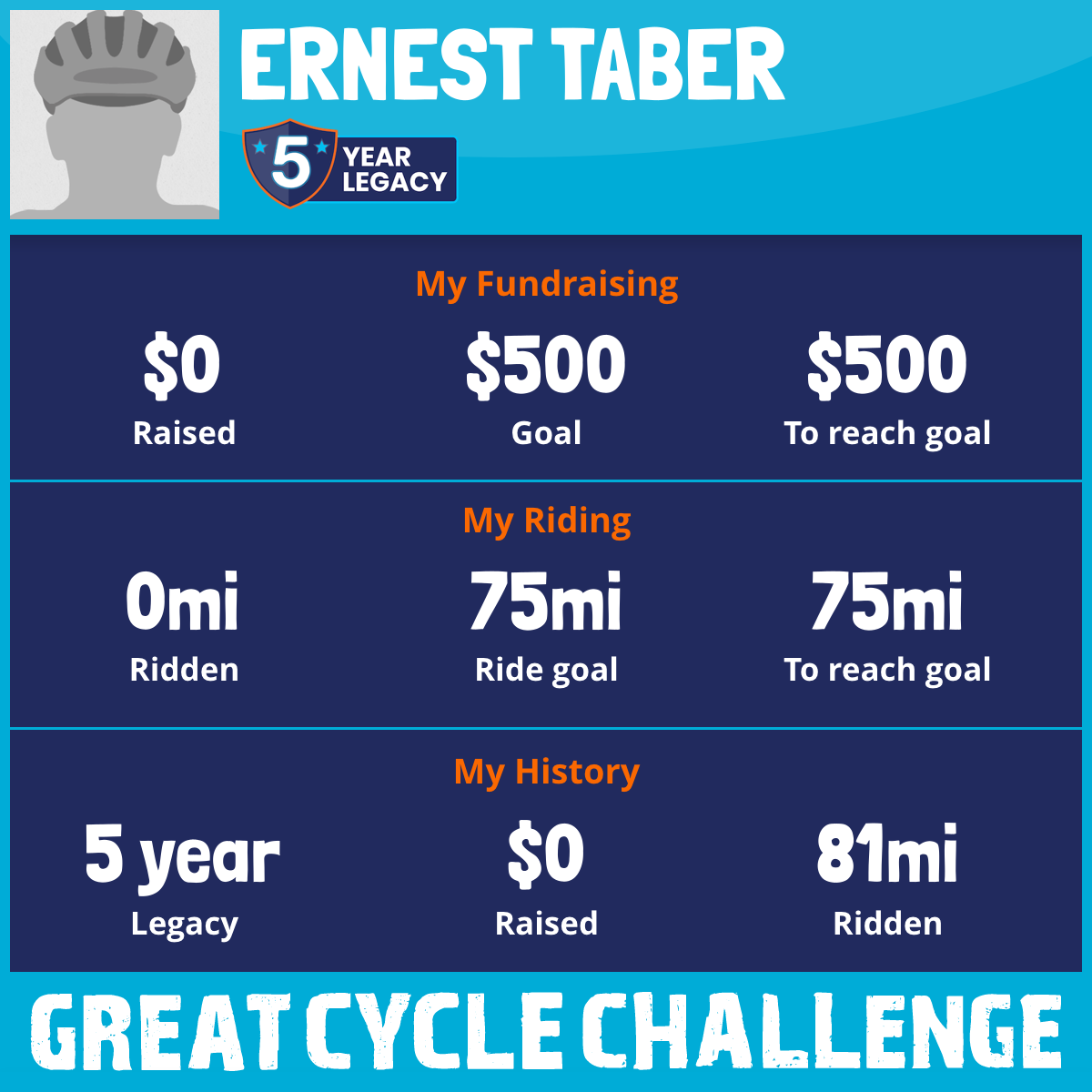 I am riding 75 mi in memory of Justyn. Please sponsor me and support my challenge to fight kids' cancer and save little lives.