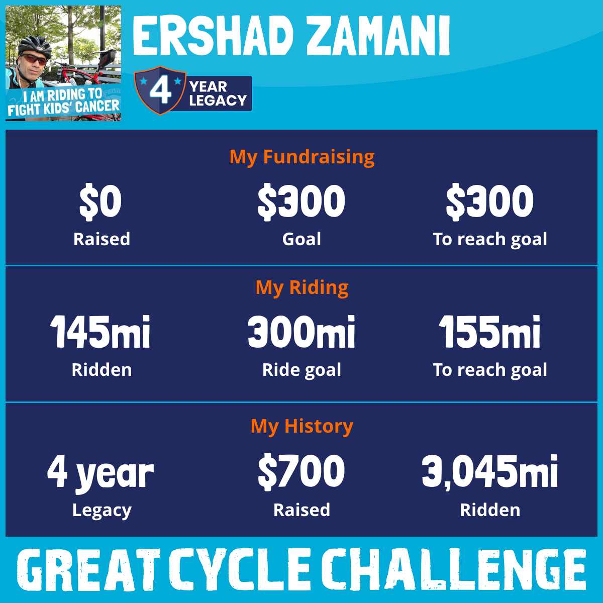 I am riding 300 mi to fight kids' cancer and save little lives. Please sponsor me to support my challenge!