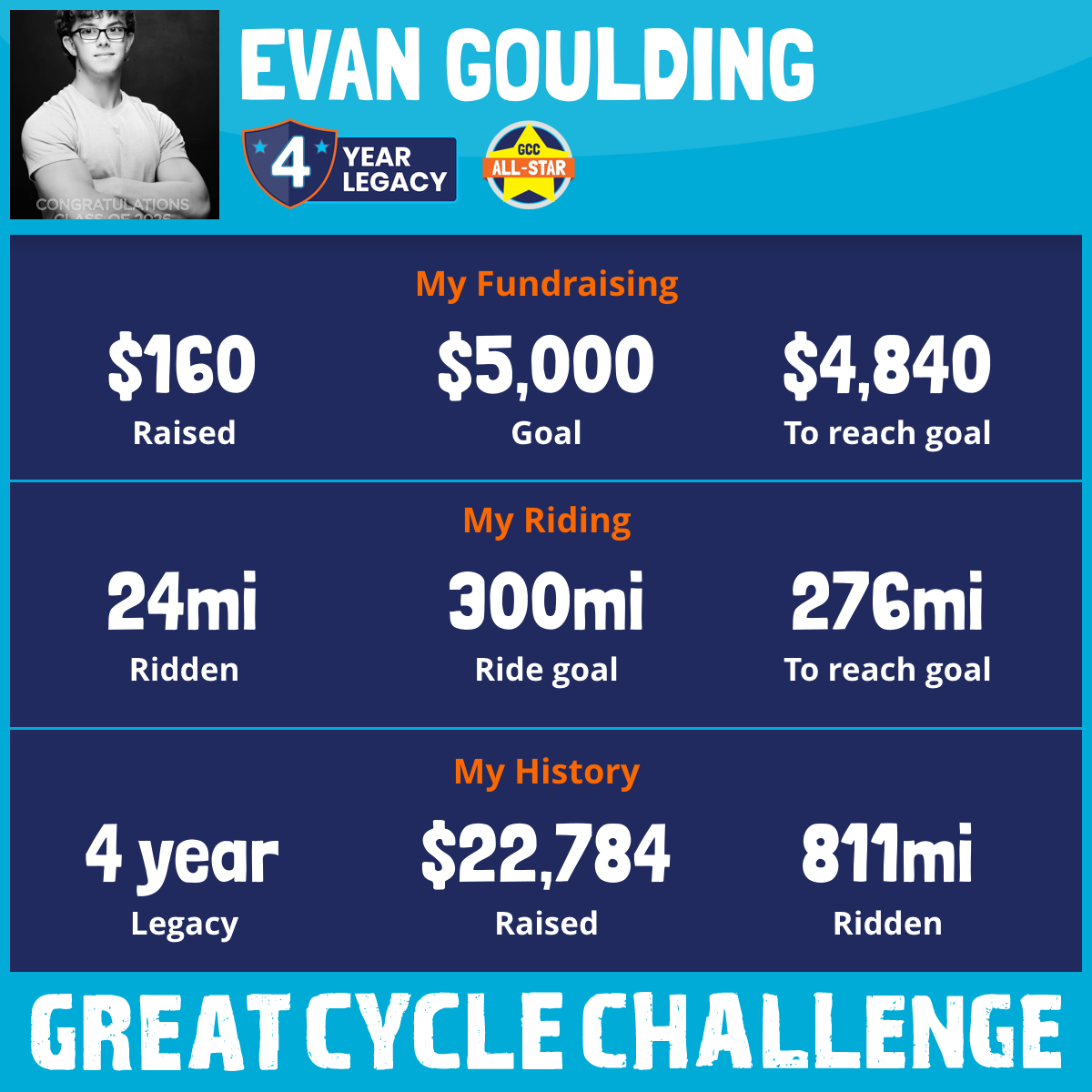 This is my fourth annual ride the the great cycle challenge! Last year I surprised myself with the amount of impact I was able to make in fighting for the children with cancer. This year, I hope to make an even bigger impact.