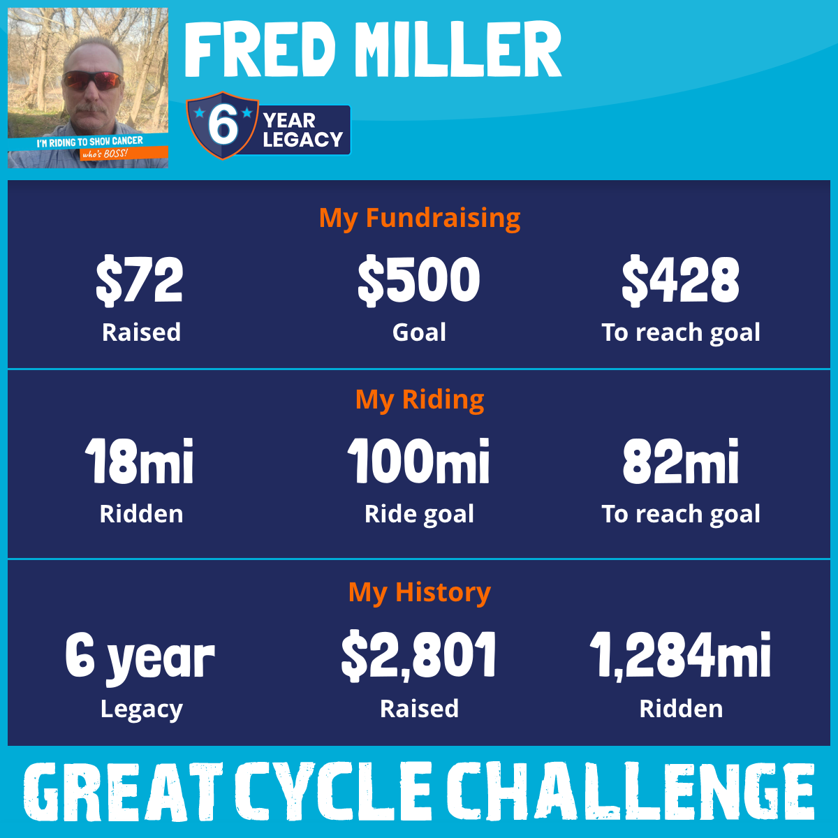 I've raised $72 My goal is $500 Donate Now
