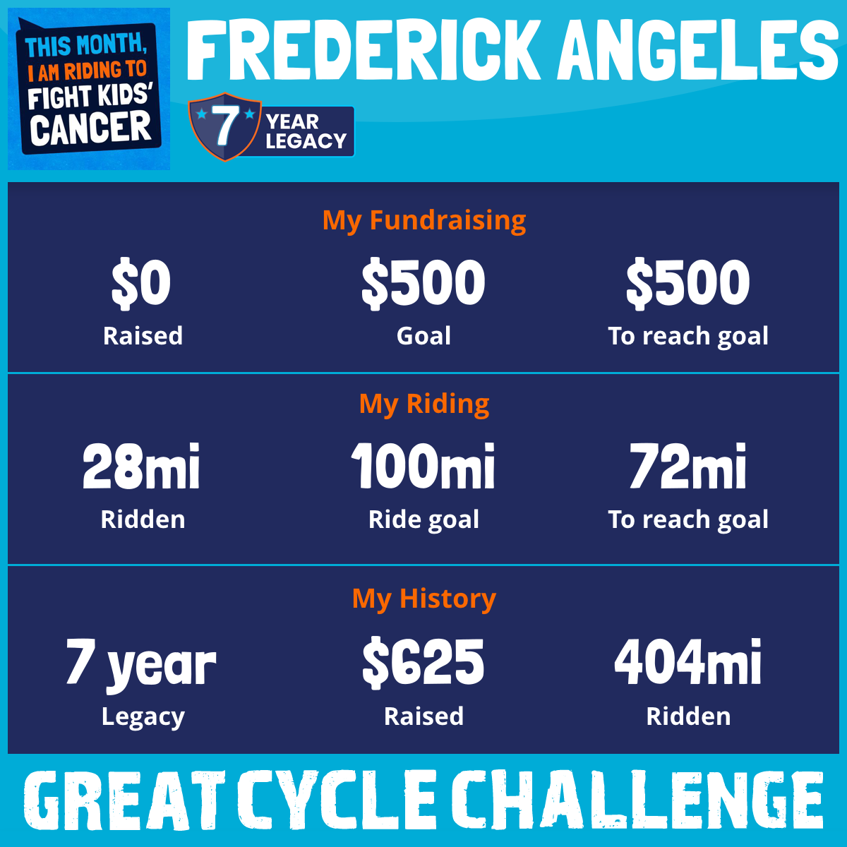 This September, I am taking part in my sixth Great Cycle Challenge to fight kids' cancer!