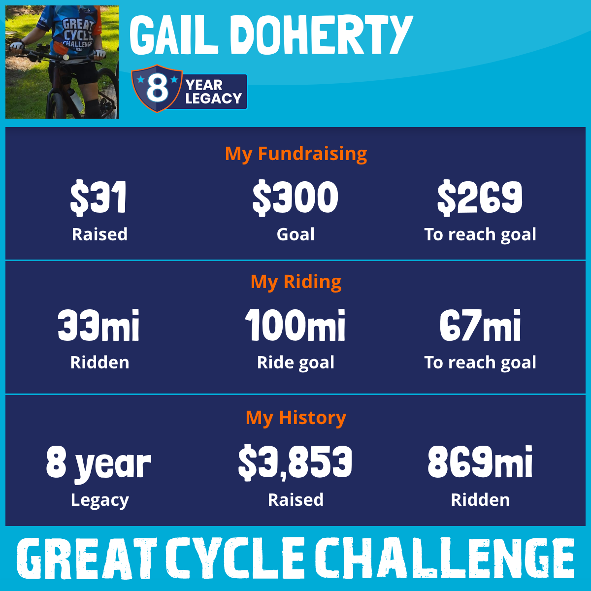 This September will be my 8th year taking part in the Great Cycle Challenge to fight kids' cancer!