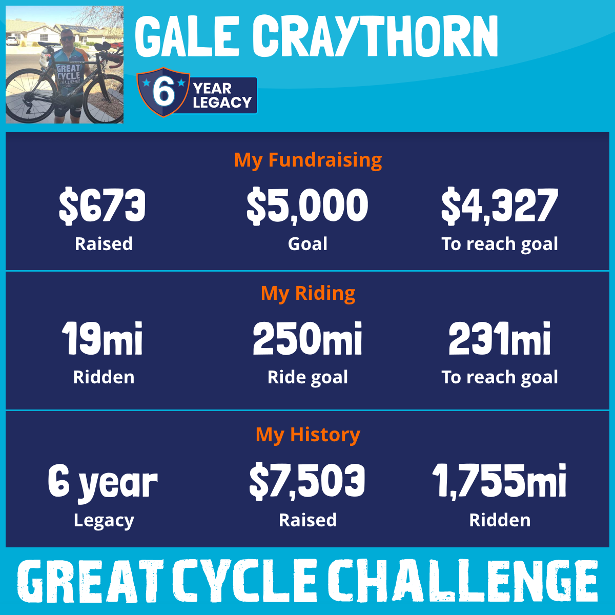 458 mi Ridden$1,399 Raised2023