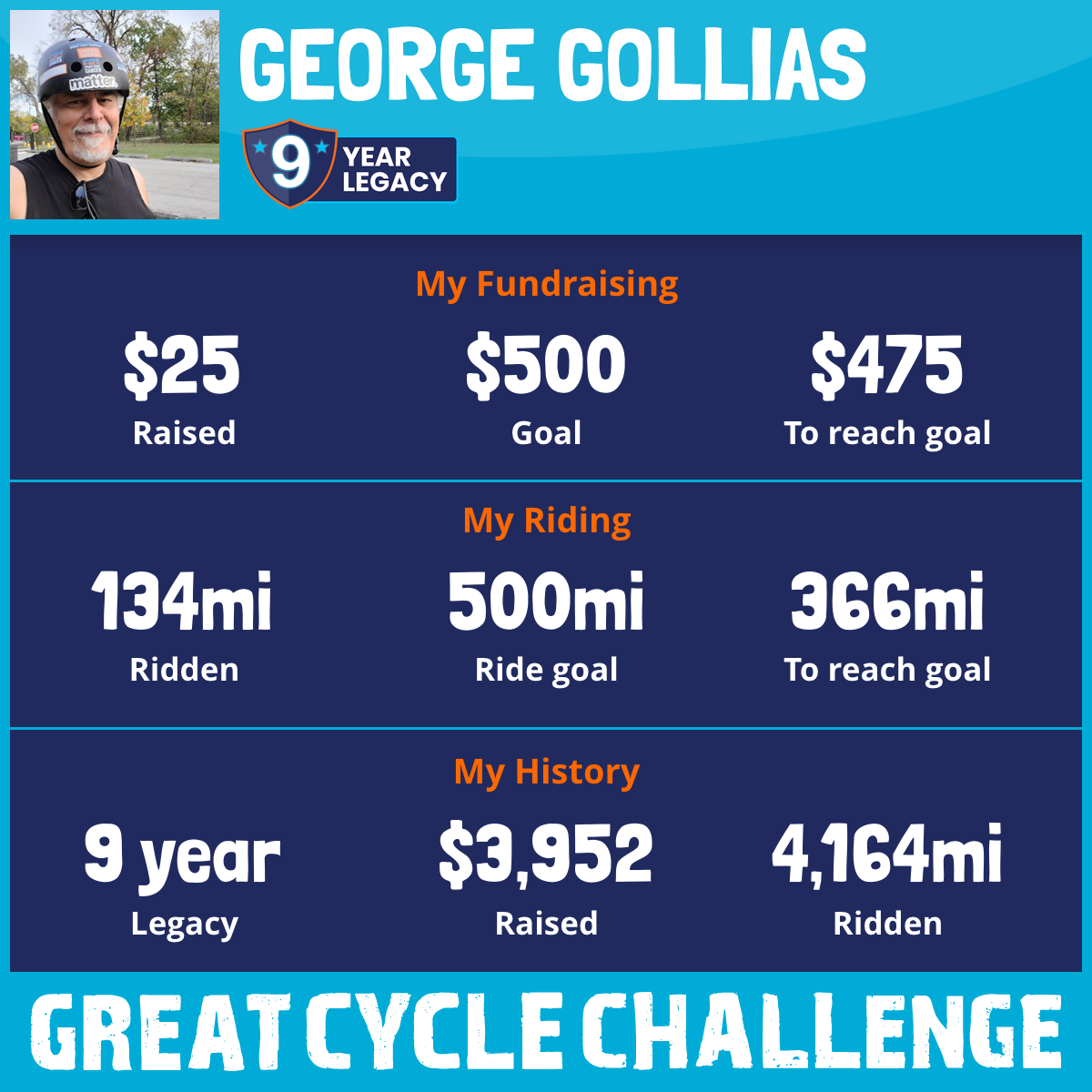 8th year taking part in the Great Cycle Challenge to fight Children's Cancer!