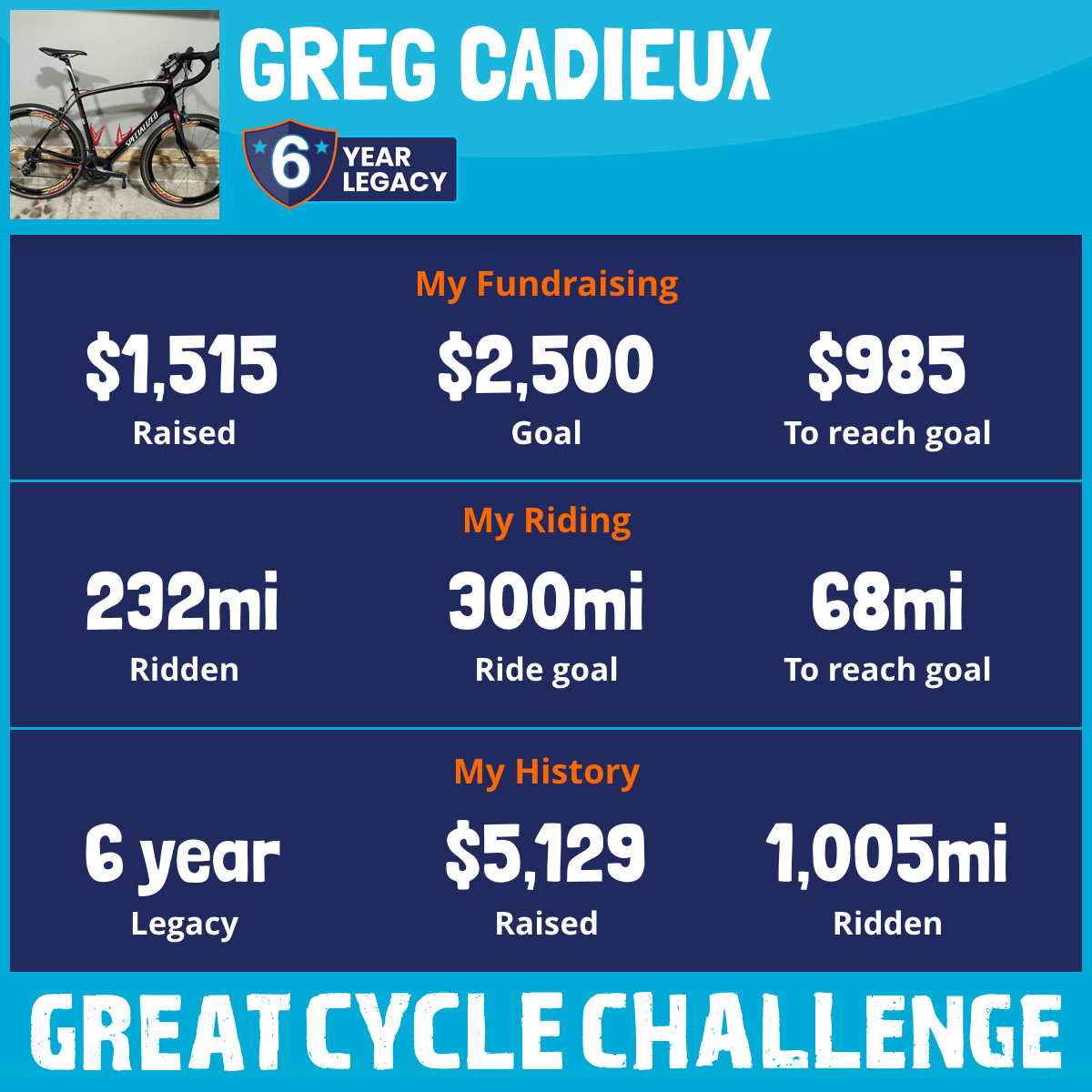Cancer is a horrible disease! My heart goes out to every child who has been stricken with this life threatening disease. This is why I have chosen to take part in the Great Cycle Challenge.