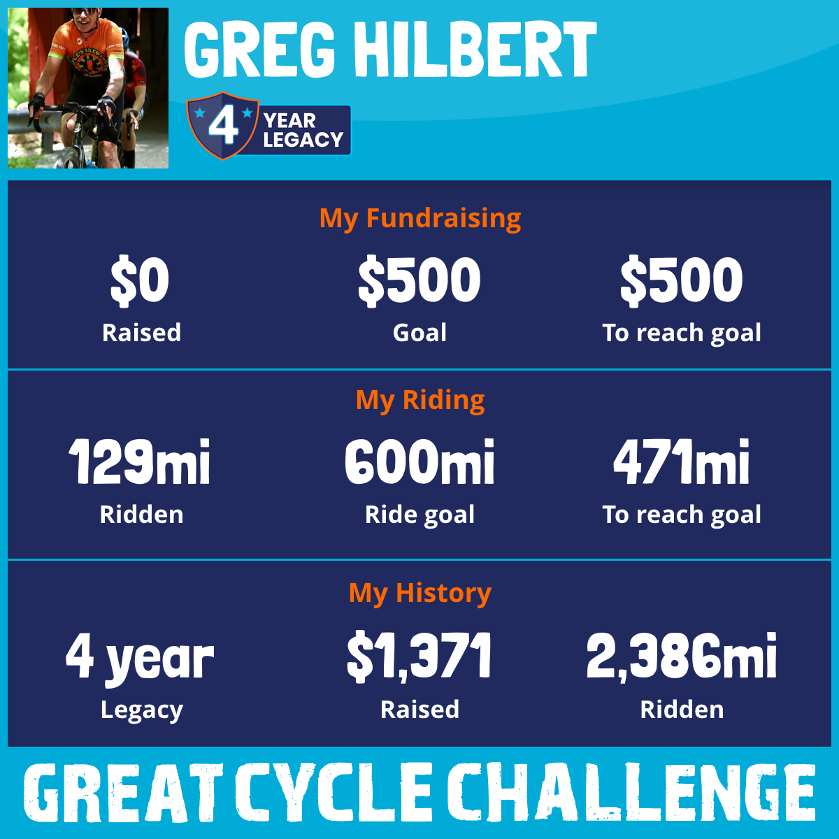 This month, I am riding 600 miles in the Great Cycle Challenge to fight kids' cancer...